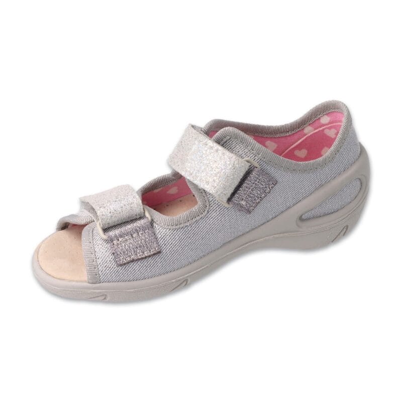Vaikiškos basutės su odiniu vitpadžiu – tai Befado pasiūlymas sausoms ir saulėtoms dienoms lauke. Jos, taip pat, puikiai tiks kaip pakaitinė avalynė darželyje ar tiesiog dėvėjimui namuose. Viršutinė dalis pagaminta iš kvėpuojančios medvilnės, o esančios dvi Velcro juostelės labai gerai priglunda prie pėdos ir yra lengvai užsegamos, kad ir patys vaikučiai galėtų užsisegti savo basutės ar vėliau jas nusiimti. Sutvirtintas kulnas stabilizuoja ir saugo pėdą nuo traumų, kad Jūsų vaikučiai galėtų saugiai žaisti, šokinėti ir bėgioti. Odinis vitpadis yra higieniškas, komfortiškas ir patogus, todėl neleis vaikų kojytėms prakaituoti. Patogios, tvirtos ir kokybiškos basutės leis sveikai vystytis Jūsų vaikų pėdutėms. Taip pat, atkreipkite dėmesį, kad prieš perkant batukus, visuomet pamatuokite savo vaiko pėdutę ir pasirinkite Befado modelio batų dydį pagal dydžių lentelėje nurodytus matmenis. Kad batai netrintų pėdų ir suteiktų visišką laisvę kiekvienam žingsniui ir šuoliui, būtinai rinkitės batus, kurie yra maždaug 0,5-1 cm didesni už vaiko pėdą.