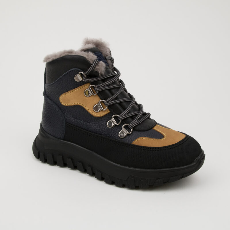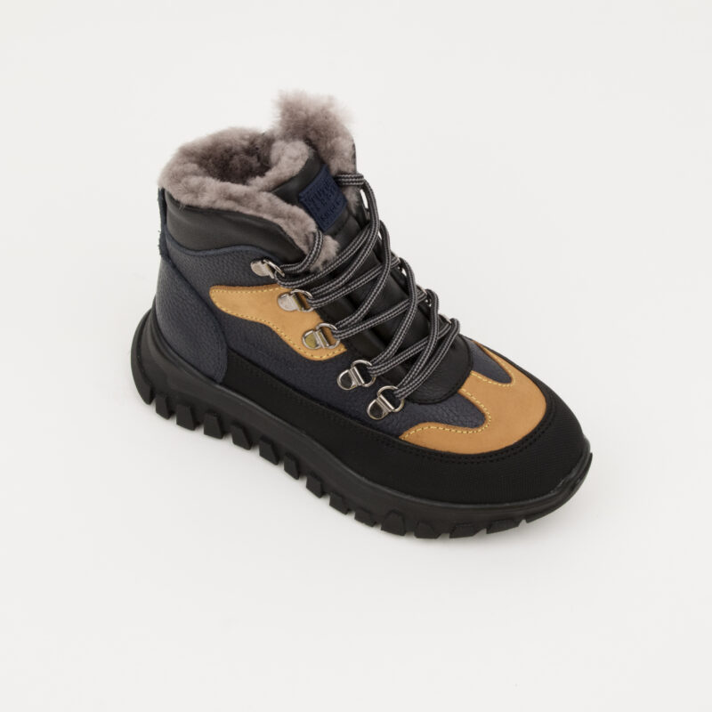 EREN žieminiai odiniai ortopediniai batai su kailiu (t. mėlyni)